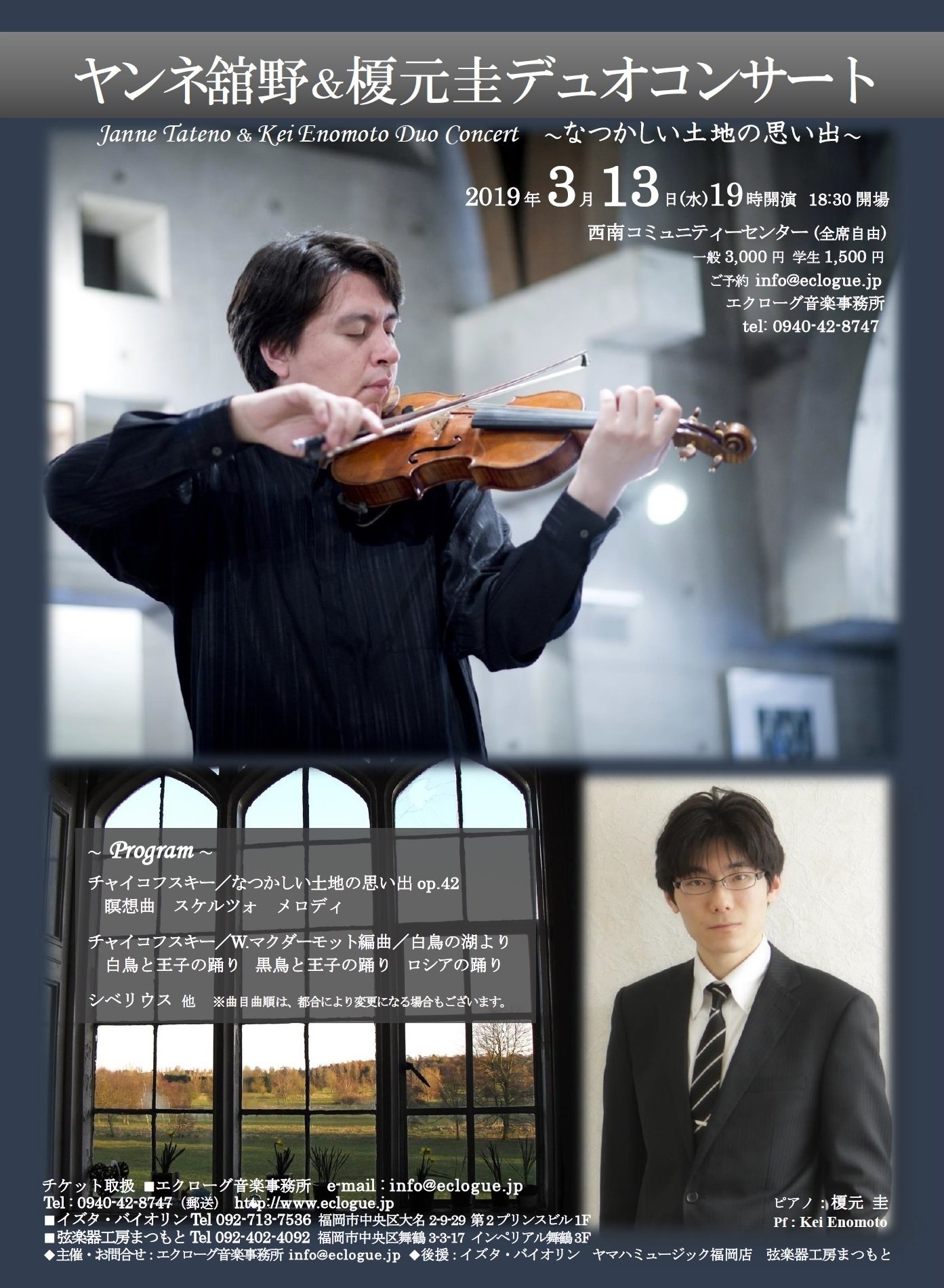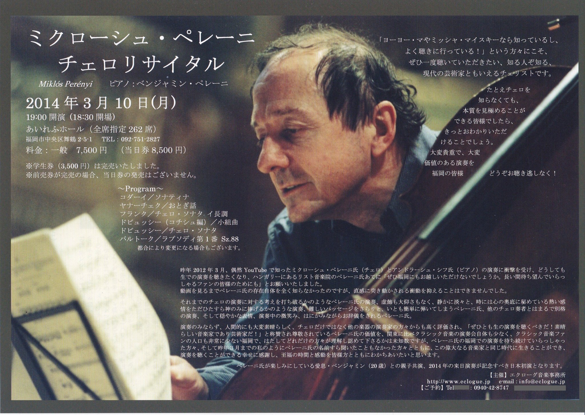 10/31まではエクローグ音楽事務所でもチケットのご希望を承りますので、お名前・枚数・TELを必ずご明記の上メールにてご連絡下さいませ。e-mail: info@eclogue.jp